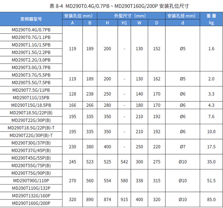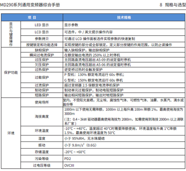 MD290-2T1.5G/2.2PB匯川變頻器三相220V 1.5KW